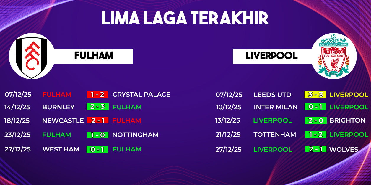 Liverpool membutuhkan kemenangan untuk menjaga persaingan di papan atas, sementara Fulham mengincar hasil besar demi mendekat ke zona Eropa. Dengan semua faktor tersebut, pertandingan di Craven Cottage dipastikan menyajikan drama, intensitas tinggi, dan kualitas sepak bola terbaik khas Liga Inggris.