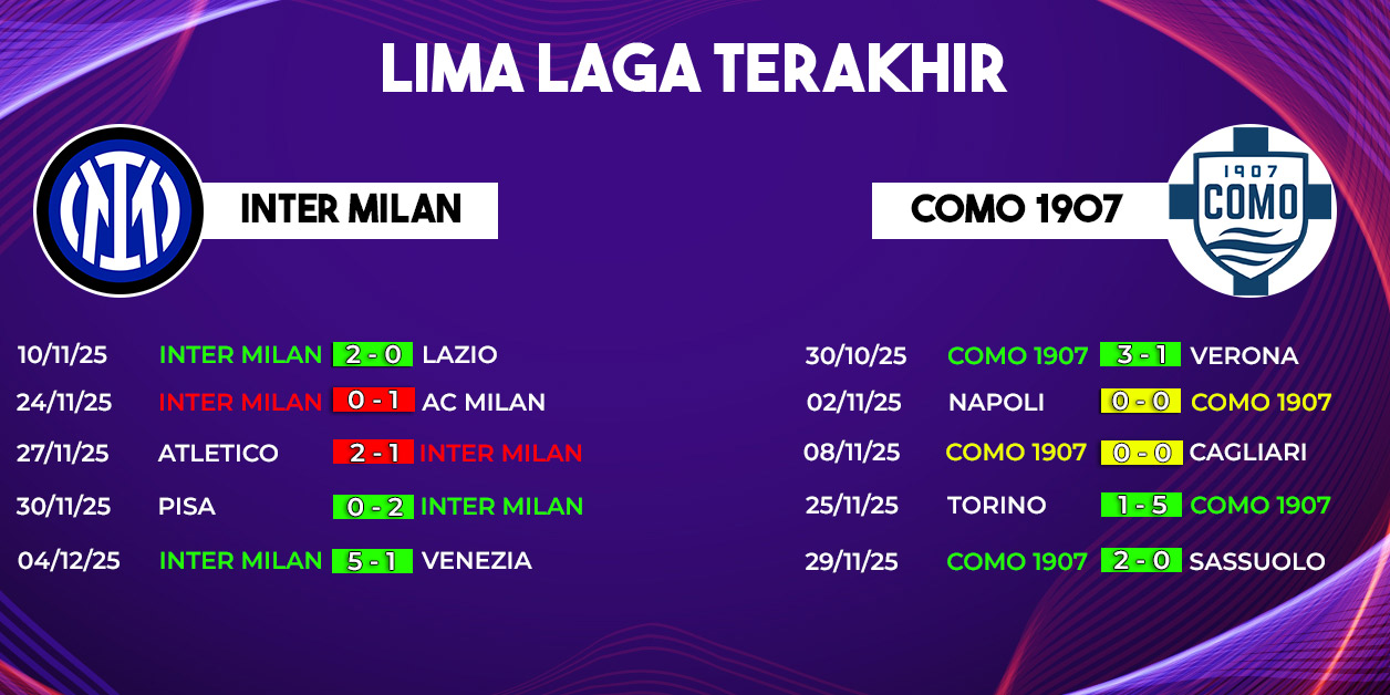 Di sisi lawan, Como datang ke markas Inter dengan penuh percaya diri setelah mencatat kemenangan penting 2-0 atas Sassuolo. Gol cepat Anastasios Douvikas dan finishing ciamik Alberto Moreno memastikan tiga poin berharga bagi Como sekaligus memperpanjang tren positif mereka.