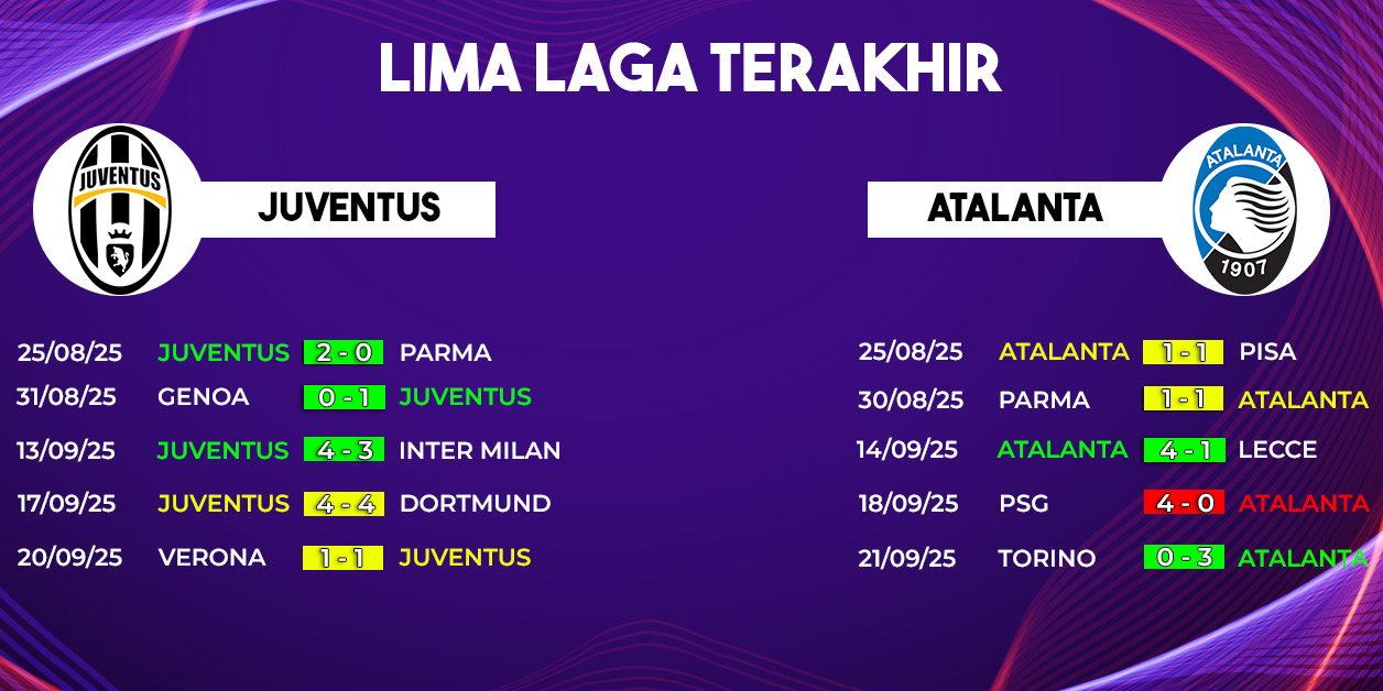 Pertarungan seru akan tersaji pada pekan ke-5 Serie A 2025/2026 ketika Juventus menjamu Atalanta di Allianz Stadium. Laga Juventus vs Atalanta dijadwalkan berlangsung pada Sabtu, 27 September 2025 pukul 23.00 WIB dan dapat disaksikan melalui live streaming Vidio.