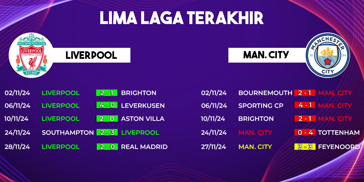 Namun, sepak bola selalu penuh kejutan. Apakah Liverpool akan melanjutkan dominasinya, atau justru Man City mampu bangkit di momen krusial ini? Semua akan terjawab pada laga panas di Anfield nanti malam. Jangan lewatkan pertandingan seru ini!