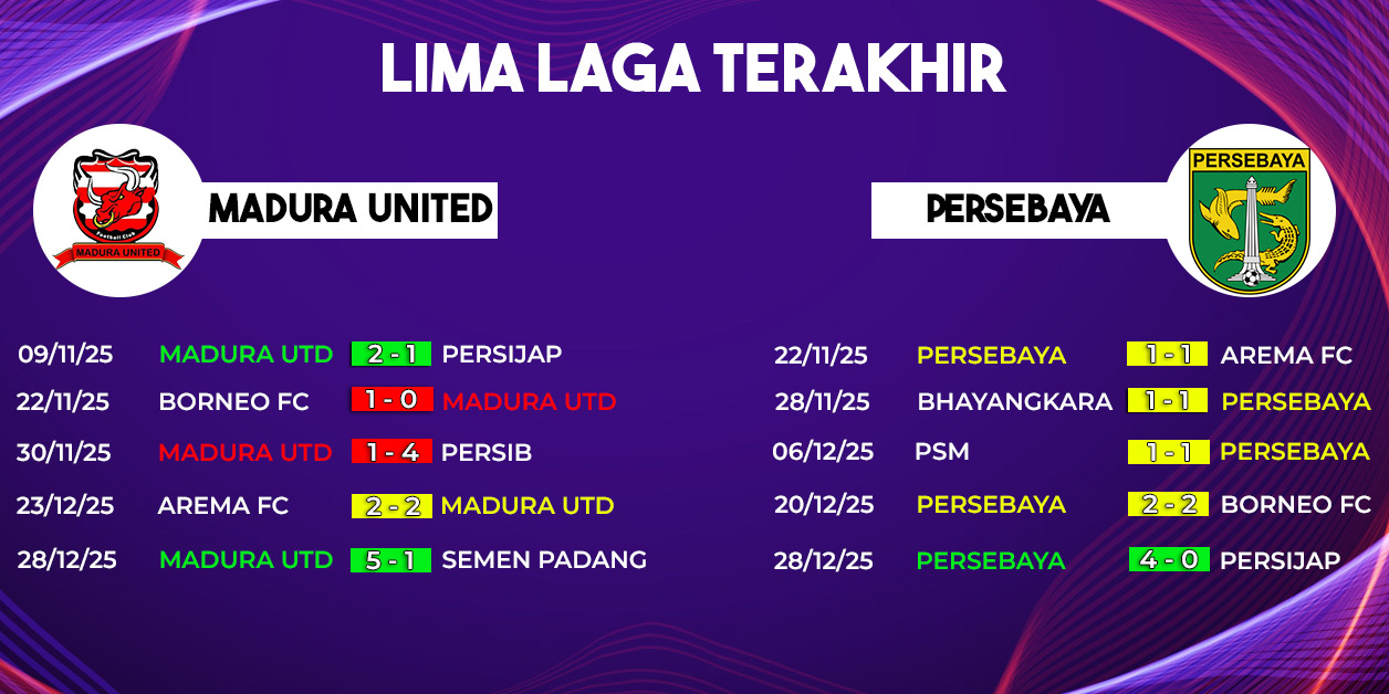 Jika menilik catatan head to head, Persebaya jelas berada di atas angin. Dalam lima pertemuan terakhir melawan Madura United, Persebaya hanya sekali menelan kekalahan. Statistik ini menjadi modal psikologis penting jelang laga.