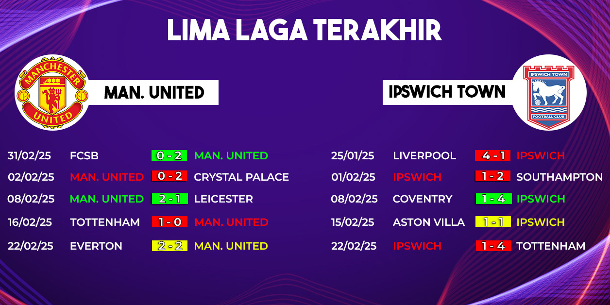 Jika melihat catatan pertemuan dan performa terkini, Manchester United memiliki peluang lebih besar untuk menang. Namun, mereka harus mewaspadai lini serang Ipswich yang tetap bisa memberikan kejutan seperti pada pertemuan sebelumnya.
