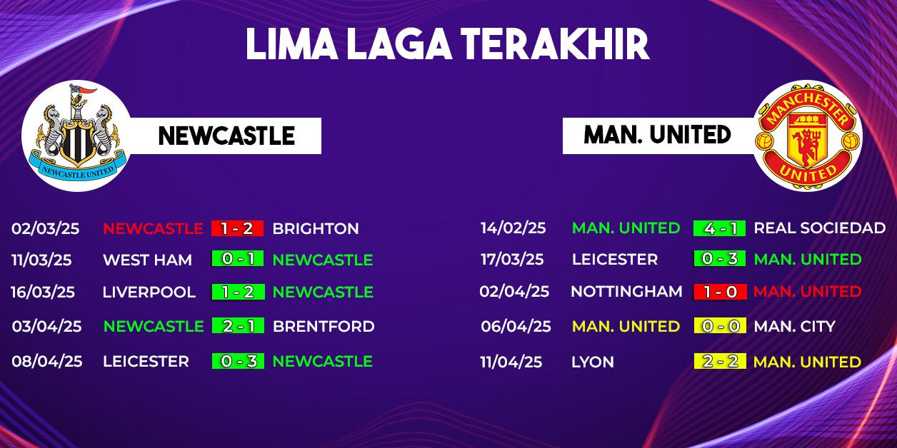 Secara statistik, Manchester United memiliki catatan buruk saat menghadapi Newcastle dalam beberapa musim terakhir. Dari delapan pertemuan terakhir di semua ajang, MU hanya mampu meraih dua kemenangan, sementara empat kali kalah dan dua kali imbang. Ini menjadi sinyal peringatan serius bagi Bruno Fernandes dan kawan-kawan.