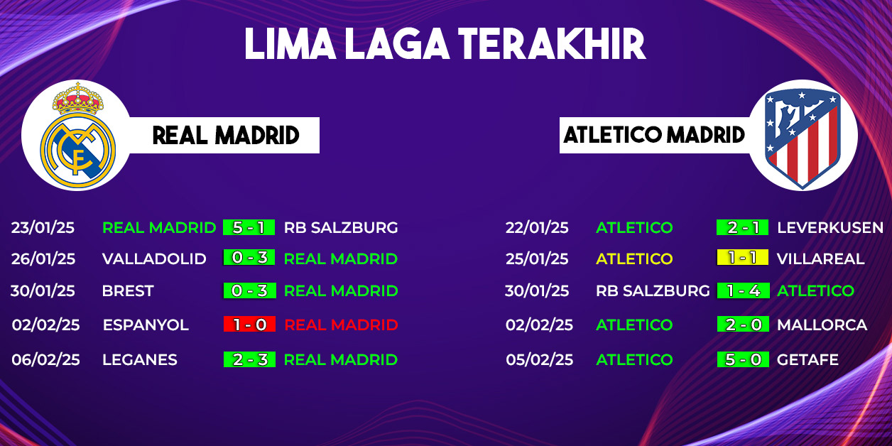 Akankah Real Madrid mampu mengakhiri rekor buruk mereka atas Atletico Madrid, atau justru Los Rojiblancos kembali mendominasi di Derby Madrid? Jawabannya akan terungkap dalam laga panas yang dinantikan ini!